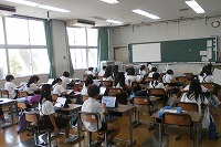 今年度久しぶりに集会の形を行っていましたが、コロナ・熱中症の状況をみて、今日の終了式は放送で行いました。 子どもたちは、各教室で座って静かに話を聞きました。