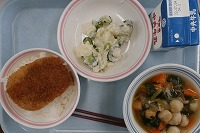 ソースカツ丼(ご飯) 牛乳 ポテトサラダ 玉麩汁