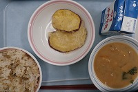 ツナと茸(きのこ)の混ぜご飯 牛乳 サツマイモの天ぷら 飛鳥汁