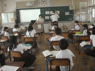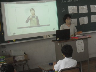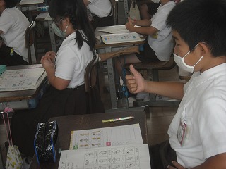 3年生は英語の表現で、言葉だけではなくジェスチャーを学習していました。言葉が聞き取れなくても、表情やジェスチャーで意思が通じます。ビデオで、言葉と動きを確認してから実際に練習していました。