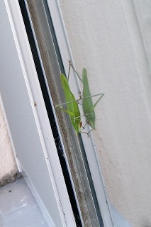 窓ガラスにとまっている時に、3年生が通りかかり、「あっ、バッタだ!」と叫んでいましたが、本当にバッタでしょうか? バッタみたいに強そうな足がありますが、実はバッタではありません。(大きく分けるとバッタの親せきですが)