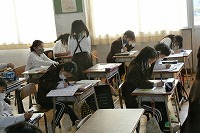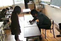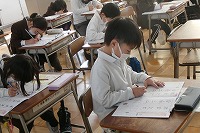 2年生が書写で、左右対称に近い字を、字の縦の中心線をイメージしながら書いていました。中心線で字の右側と左側がが対称になるように意識して書きます。