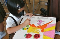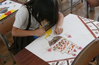 2年生が図工で不思議な帽子の絵を描いていました。国語で学習する、きたむらさとし作「ミリーのすてきなぼうし」を読んで自分が想像力で作り上げる不思議な帽子は、ケーキがのっていたり花束になっていたり果物がのっていたりクジャクが羽を広げていたりと本当に様々でカラフルな帽子がたくさん出来上がっていました。