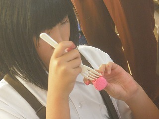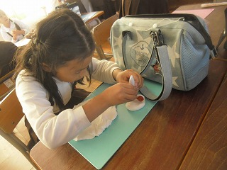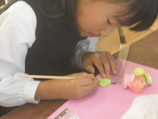 2年生は図工で、紙粘土を使ったスイーツを作っています。自分の食べたいものや夢のスイーツなどカラフルで本物みたいなスイーツを作ります。白い紙粘土に少しずつ色を混ぜて希望の色にしていきます。手を絵の具で汚しながらもだんだん色がついていきます。