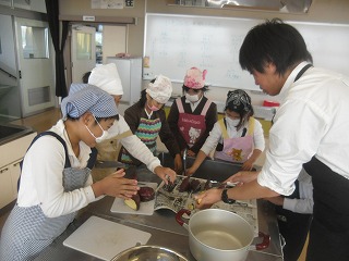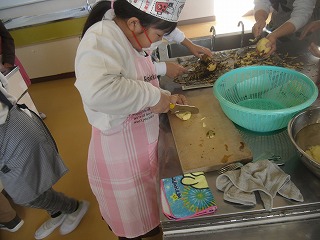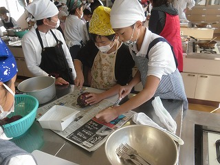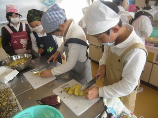 今日は、4年生がいもパーティーをするために調理実習をしています。サツマイモの皮むきや、包丁で小さく切っていくところで、その堅さに苦労しています。でも、実際にやってみないとその堅さもわからないですね。