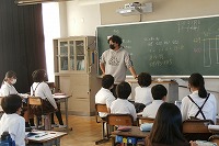 5年生が算数で平均について学習していました。 世の中には様々なところで「平均」が使われています。平均の考え方を使うのはどんな時か、ということも含めていろいろなデータから平均を導き出していました。