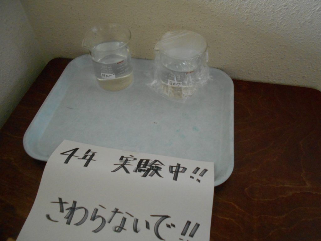 4年生は、理科でひなたとひかげでは、水の蒸発が違うかどうか実験中です。
