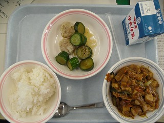 ご飯 牛乳 焼売(シュウマイ) 麻婆豆腐 きゅうりの香り和え