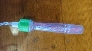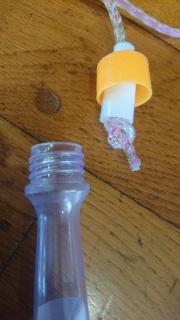 縄の持ち手部分は、縄がねじれないように自在にくるくる回るようになっています。しかし、写真のように余った部分を束ねてしまいこんだり、結び目を付けてぬけなくしたりすると、持ち手の中がきゅうくつになり、自在に回らなくなってしまいます。すると、縄がどんどんねじれてきてからみやすくなり、足や体に当たりやすくなってしまいます。