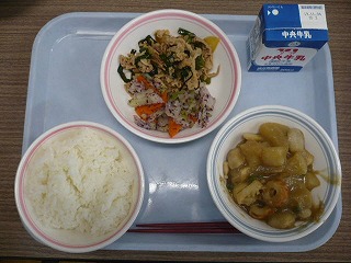 ご飯 牛乳 豚肉の生姜炒め 大根とイカの煮物 ゆかり和え