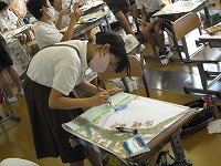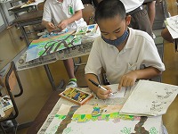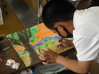 5年生の図工「木のある風景」が完成間近です。みんな黙々と集中しています。
