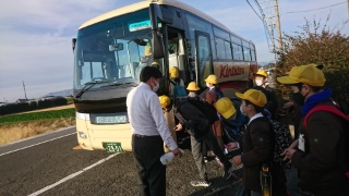 今日は3年と6年の社会見学です。良い天気の朝になりました。3年6年それぞれ元気にバスに乗って出発しました。