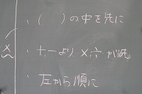 基本は左から順ですが、足し算引き算より掛け算割り算のほうが先、でも、( )の中は、掛け算割り算足し算引き算関係なく一番先に行うのです。