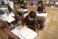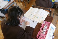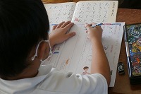 1年生が国語で、ひらがなの練習をしていました。すでにひらがなもカタカナも学習し、漢字も学び始めていますが、美しい字を書くために、バランスに気を付けながら丁寧に練習していました。