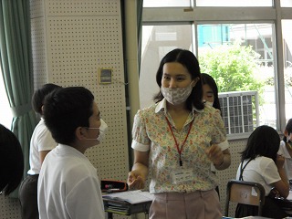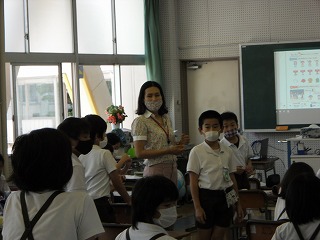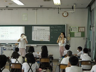 5年生は英語で、誕生日の言い方を学習していました。誕生日の時には、月(month)と日(day)を言いますが、日は1(one)、2(two)、3(three)ではなく1(first),2(second),3(third)のように言い方が変わります。まずは自分の誕生日kら覚える人もいれば、順に言い方を練習している人もいました。そして、先生からの、