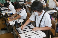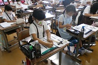 3年生が書写で「小川」という字を書いていました。「小」も「川」もどちらも縦線が3本です。でも、はねや払いを使う部分が多く、3本の長さもそれぞれ違います。