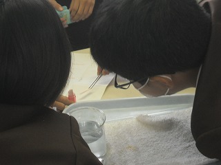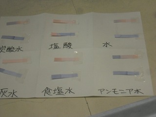 6年生が理科でリトマス紙の実験をしていました。いろいろな溶液を赤と青のリトマス紙につけて、色が変わるかどうかを確かめます。年をとってもこの実験は忘れないという人が多いようですが、この6年生はどうでしょうか。