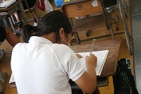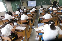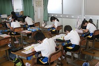 3年生が国語で漢字ドリルに取り組んでいました。もう前期も終了ですので、ドリルの前期分も最後のまとめです。半年間学んできたことを思い出しながら黙々と書き込んでいました。