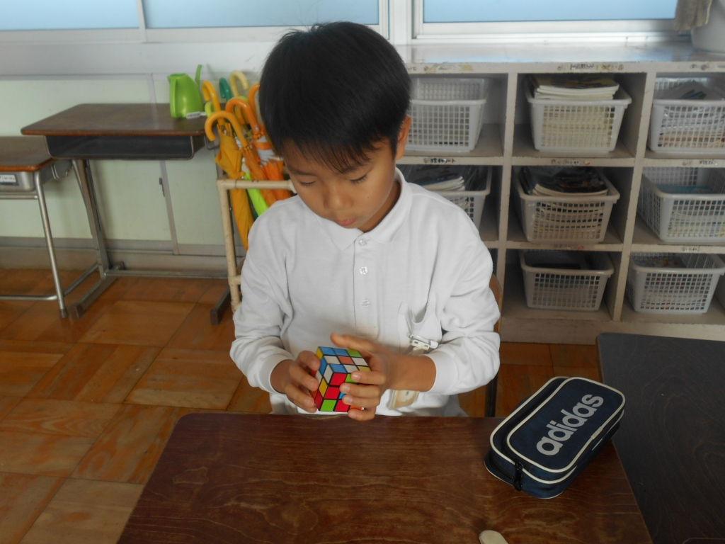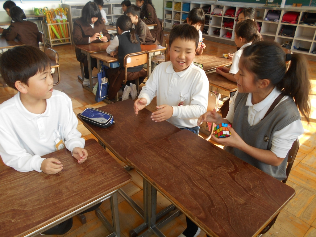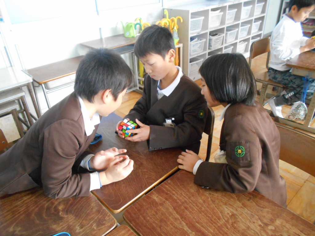 お楽しみ会では、ルービックキューブの対戦をしました。