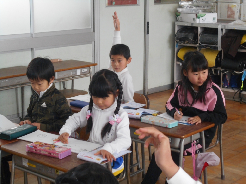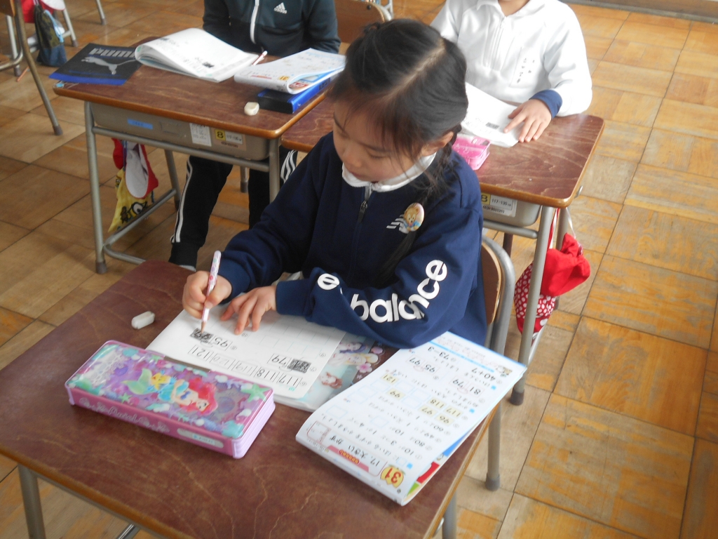 1年生は、算数で「大きなかず」の問題を解きました。