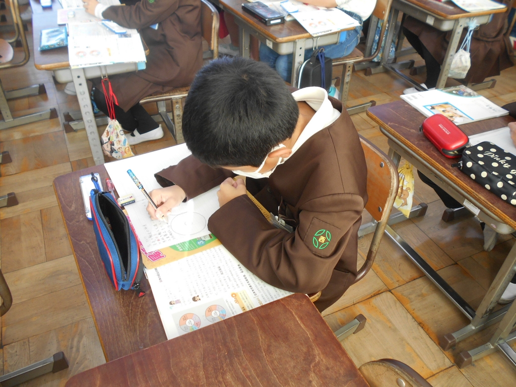 5年生は、社会で、日本の輸出の特徴について学びました。グラフなどをかき、まとめました。