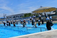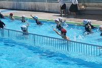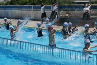 5年生が体育で、「西川端ソーラン」を踊りました。ただ、通常のダンスではなく低学年用の浅いプールで踊ったのです。これは、
