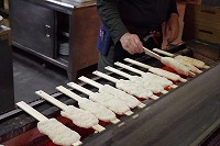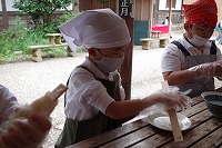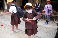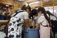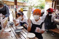 10月25日は3年生の社会見学で、「三州足助屋敷」に行ってきました。戦後の昭和を中心に古い時代の建物や文化を経験できるところです。子どもたちは、独楽(こま)やけん玉竹とんぼなどの昔の遊びや、機織り(はたおり)や藍染め(あいぞめ)、紙すき、鍛冶屋(金属加工)などのむかしの生活・文化を体験・見学し、愛知、岐阜、長野、静岡などの山間部を中心に食べられた「五平餅」を自分で作って食べました。