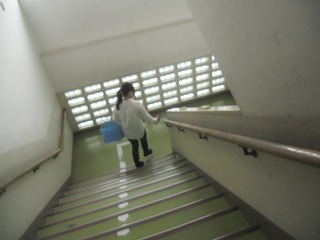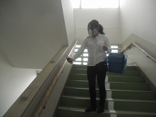 マスクや手洗い、換気、間隔をあけて座ることなどコロナウイルス感染症拡大防止のための努力をみんなで行っていますが、ほかにも学校では工夫をしています。たとえば、この写真のように定期的にみんなが触れるところのアルコール消毒です。階段の手すりやドアの取っ手、電灯のスイッチ、水道の蛇口など日常的にさわってしまうところはたくさんあります。先生たちは、みんなが帰った後の教室で多くの人たちが触るところを中心に消毒をしているのです。