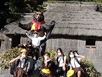 北海道アイヌのコタン なぜかヒグマがハロウィンのマントをつけていました。