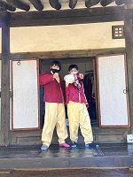 リトルワールド内ではグループごとに、様々な文化を体験しました。気候や文化に合わせた建物を見るだけではなく、食べ物を食べ、そして衣服を必ず一着体験しました。