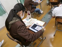 6年生が外国語で、食料自給率を調べていました。小麦や米などいろいろな穀物など農産物について、英語で何というか知ると同時に社会的な問題についても学習していました。