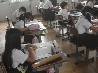 4年生が音楽で、モーツアルトの「魔笛」を鑑賞していました。中でも、パパゲーノとパパゲーナの掛け合いの部分です。言葉の意味はわかりませんが、曲調や言葉の雰囲気など、それぞれが感じたことをまとめていました。