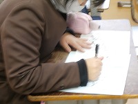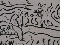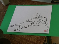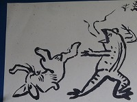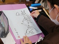 鳥獣戯画の模写をしていました。自分の呼んだセリフの気持ちになって絵を描いたのでしょうか。同じウサギ、同じカエルでも表情や様子が違って見えます。