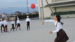 今日の朝、運動委員会主催のドッジボール集会が行われました。本当は月曜日の朝の予定だったのが、雨天で延期されていたのです。雲が多くて寒い朝でしたが、みんな楽しんで盛り上がりました。