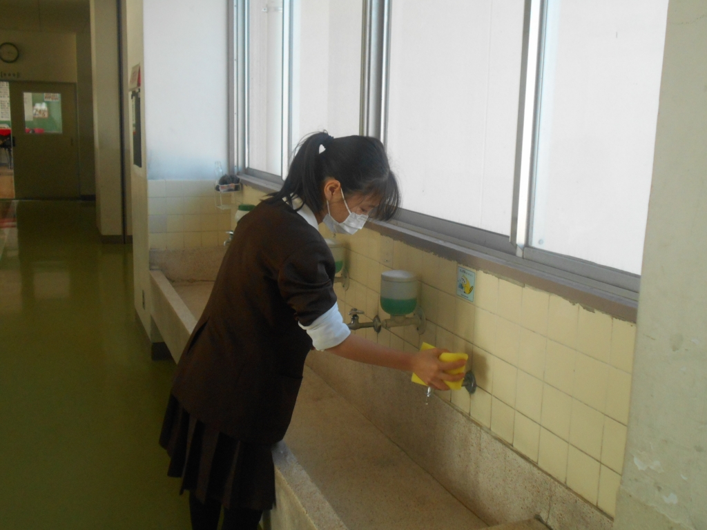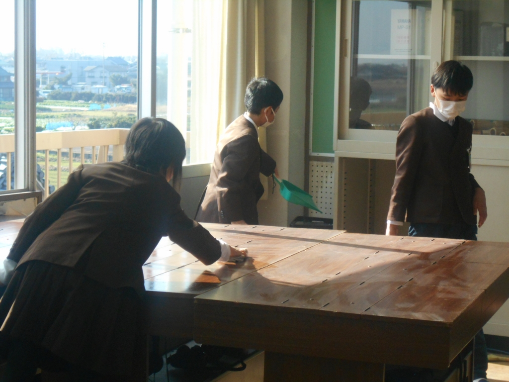 大掃除では、普段あまりしないところまで、ロッカーをどけてホウキではいたり、床の汚れをとったりして、隅々まで掃除しました。
