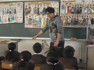 5年生の家庭科は、このあとミシンを使う裁縫を学習していきます。そのためにエプロンを制作するのですが、先生がいろいろなエプロンを紹介して、みんなに作りたいものを考えさせていました。