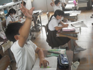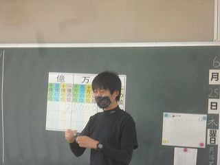 4年生が算数で、位取りについて学習していました。10や100で掛けたり割ったりすると、数がどのように変化するのか、いろいろな数について確かめていました。