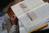 4年生が国語で「和紙」についての説明文を学習していました。身近に使われている洋紙とは違って、「楮(こうぞ)」や「三椏(みつまた)」、「雁皮(がんぴ)」を原料に古く(奈良、平安時代)から日本で作られていた「和紙」の特徴や、現代でも使われている理由などを様々な例から読み取っていきました。