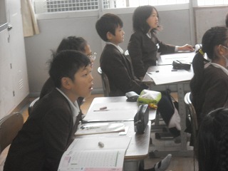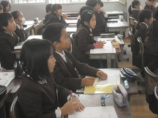 3年生がローマ字の学習をしていました。50音の他に濁音(が、だ、ざなど)や拗音(きゃ、きゅ、きょなど)、促音(かっ、さっ、たっ)なども含めて練習し、自分の名前をローマ字で表していました。