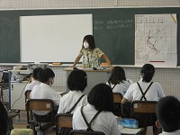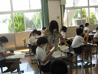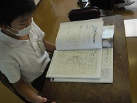 5年生が理科で台風について学習していました。今年日本にやってきた台風の進路を天気図を使って、一人一人ノートの日本地図に位置づけ、台風についてのビデオを見て台風のメカニズムや進路について学習しました。