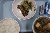 ご飯 牛乳 秋刀魚の梅煮 磯香和え 津島麩入りすき焼き