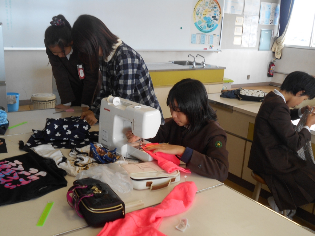 6年生は、家庭科で古着を使って、リフォーム作品を作り始めました。どんな作品ができるか楽しみです。