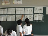 重要なキーワードを黒板に掲示し、その言葉の説明の後には裏返して細かい説明をみせるという工夫をしていました。
