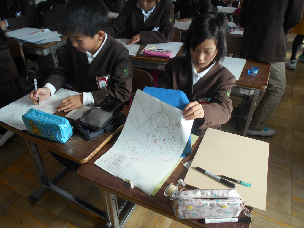 6年生は、版画に取り組みます。今日は、版画の作品を参考にして、まず、ラフスケッチをして、下絵を描きました。忘れられない一瞬を何をしているかすぐわかるように描くことが目標です。