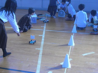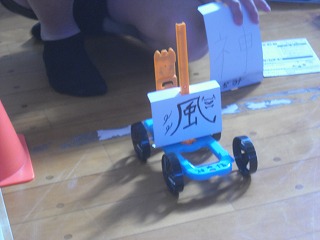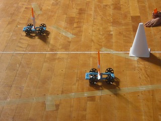 それぞれ自分で組み立てた車なので、タイヤがきちんとはまっていなかったりするとまっすぐ進みません。