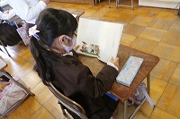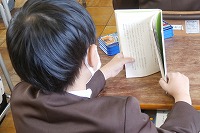 授業中にやるべき課題が早く終わった時など、まだ終わっていない人を待つ時間に、読書をしたり自由帳にお絵描きをしたりできる時間になることがあります。この日1年生も漢字の練習が早く終わった子が読書をしていました。