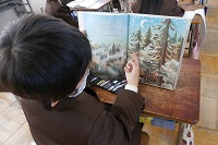 物語を読む子や迷路に取り組む子、図鑑を見ている子など様々ですが、もうすぐクリスマスだからか、クリスマスに関する話や外国の話を見ている子が多いようでした。