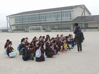 運動場は少し湿っていましたが、外で集合することができ、無事に出発しました。