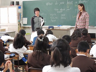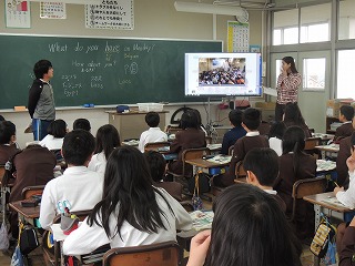 5年生は、外国語で世界の子どもたちや学校の様子について学んでいました。