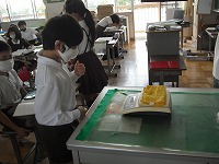 4年生が、精密な秤(はかり)の数字をじっと見つめていました。濡れたタオルがかわいた後の重さをはかっているのです。重さが減ったタオルに含まれていた水はどこに行ってしまったのでしょうか。